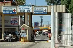 Los Algodones (English: The cottons), is a town and borough in the municipality of Mexicali, Baja California, Mexico. It is also commonly identified as Vincente Guerrero.[1][2] Located on the United States-Mexico border to the north and east, Los Algodones is south of Andrade, California, and close to five miles west of downtown Yuma, Arizona. It reported a population of 5,474 in the 2010 Mexican census. Los Algodones is popularly referred to as "Molar City" due to hundreds of dentists that cater to Americans seeking affordable dental care outside of the United States.[3]