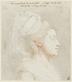 - Jean-Louis-Paul-François de Noailles (1739–1824), who married Henriette Anne Louise d'Aguesseau in 1755. After her death in 1794, he married Baroness Wilhelmine Justine von Mosheim in 1796.[1]