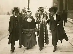 From 1903, Anderson had been active in organizations affiliated with the NUWSS, which advocated for gaining voting rights through peaceful means. Frustrated by the lack of progress on voting rights, in 1907 she became an active member of the more radical WSPU.[4] On 18 November 1910, Anderson joined her mother, Emmeline Pankhurst, Alfred Caldecott, Hertha Ayrton, Mrs Elmy, Hilda Brackenbury, Princess Sophia Duleep Singh and 300 women to petition Prime Minister Asquith for voting rights.[5] The protest became known as Black Friday owing to the violence and sexual assault the protesters faced from the police and male bystanders.[6] More than one hundred women were arrested, including Anderson, but all were released without charge.[6] In 1912, she was sentenced to six weeks’ hard labour in Holloway for her suffragette activities, which included breaking the window of a property at 47 Rutland Gate.[7]