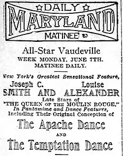 - ^ "Dancers at Maryland". Baltimore Sun. June 8, 1909. p. 7. Retrieved May 31, 2021 – via Newspapers.com.