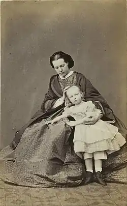 Marie Henriette, Duchess of Brabant and her daughter Louise. Photography by Louis-Joseph Ghémar, 1863.