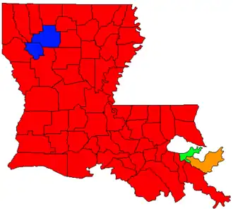 ![]() Parish results Jindal: 30–40% 40–50% 50–60% 60–70% 70–80% Boasso: 40–50% Georges: 30–40% Campbell: 30–40% 40–50% | |||||||||||||||||||||||||||||||||||