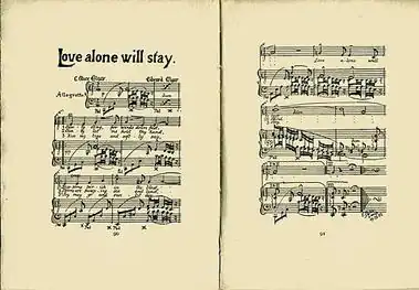 "Love alone will stay" is a poem by Caroline Alice Elgar, set to music for voice and piano by her husband, the English composer Edward Elgar, in 1897.