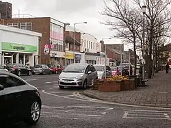 As Gateshead expanded southward to meet the village, Low Fell became a residential suburb of Gateshead but one which has, through its atypical development, has retained a rural village character.[58] In 1897, the first shops were built on Durham Road.[59] These expanded substantially so that by 1939 the villagers were able to forgo travel to nearby Gateshead for commercial purposes.[24] Today the Durham Road area is "a vibrant commercial hub with thriving shops, bars and restaurants"[57] as well as some banks and small offices.[60] These now act as the principle commercial centre for the area[61] though the townscape in this area varies greatly and the unsympathetic development at the crest of Albert Drive in the 1960s is uncommon and has been said to detract from the suburb.[62] A smaller commercial area developed at Kells Lane, again predominantly built through small enterprise, and today the area contains a butcher's shop,a bakery, hair dressers and a greengrocers.[60]