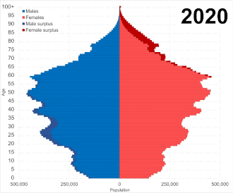 While the number of elderly people is increasing, the number of elderly supported by every 100 working-age people is expected to soar from 37.6 in 2019 to 120.2 in 2067, among the highest levels in the world.[2]