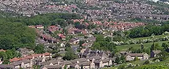 Lowerhouses is a residential district situated in a wooded hillside, adjacent to Hall Bower, between Newsome and Almondbury, approximately 1 mile (1.6 km) of Huddersfield town centre. It comprises multiple social housing estates, with a mixture of private housing throughout.