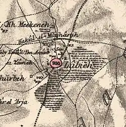 In 1875, the French explorer Victor Guérin visited the village, called Loubieh, and estimated it had 700 inhabitants.[25] He further noted that: "A house built of cut stones of medium size in the direction of east and west appears to occupy the site, and to be built out of old materials formerly used for a Christian Church".[26]