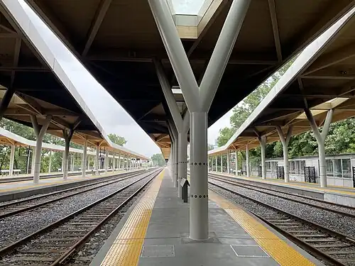 On 12 February 2024, Exo announced that this station would be closed starting 1 April 2024 for repair works to bring it up to modern standards.[4] The existing platforms were repaired and canopies added above them. Following the closure, the Vaudreuil-Hudson, Saint-Jérôme, and Candiac lines were affected. The Vaudreuil-Hudson and Candiac lines shortened service to Vendôme Station, whereas service on the Saint-Jérôme line was shortened to Parc Station, although some trains continued on to Montréal-Ouest Station.