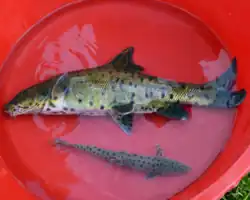 The Mesopotamian barbel or leopard barbel (Luciobarbus subquincunciatus) is a species of cyprinid fish found in the Tigris-Euphrates river system and is an inhabitant of large rivers. It has been (and most likely is still) declining very rapidly for at least the last 30 years. This species has disappeared for 12 years until it was rediscovered in January 2024 after a local fisherman caught an individual, and soon after another individual was captured.[2] While there are not enough data to identify the actual rate of population decline, it was once locally abundant but now almost absent.