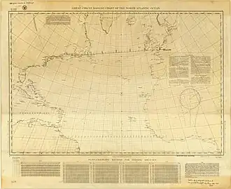 At around 9:52 AM New York time, or 27 hours after he left Roosevelt Field, Lindbergh saw "porpoises and fishing boats," a sign he had reached the other side of the Atlantic.[67][72] Lindbergh circled and flew closely, but no fishermen appeared on the boat decks, although he did see a face watching from a porthole.[67][62] Dingle Bay, in County Kerry of southwest Ireland, was the first European land that Lindbergh encountered; he veered to get a better look and consulted his charts, identifying it as the southern tip of Ireland.[73][69][67] The local time in Ireland was 3:00 PM.[68] Flying over Dingle Bay, the Spirit was "2.5 hours ahead of schedule and less than 3 miles (5 km) off course."[68] Lindbergh had navigated "almost precisely to the coastal point he had marked on his chart."[62] Lindbergh wanted to reach the French coast in daylight, so increased his speed to 110 miles per hour (180 km/h).[68] The English coast appeared ahead of him, and he was "now wide awake."[67] A report came from Plymouth, on the English coast, that Lindbergh's plane had started across the English Channel.[62] News soon spread across both "Europe and the United States that Lindbergh had been spotted over England," and a crowd started to form at Le Bourget Aerodrome as he neared Paris.[72] At sunset, he flew over Cherbourg, on the French coast 200 miles (320 km) from Paris; it was around 2:52 PM New York time.[68][67]