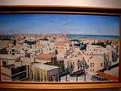 Upon his arrival in Mandatory Palestine, and as a dedicated Zionist, Blum started paintings scenes of everyday life and landscapes in Israel.[3] He did many paintings of Jerusalem (including the Western Wall and the Mount of Olives), Tel Aviv, the Sea of Galilee and the Judaean Mountains.[3][5] Additionally, he painted some kibbutzes: Kiryat Anavim and Degania Alef, and the lives of Israeli soldiers, including the Palmach.[3][6][7] He also painted copper mines in the Timna Valley.[3] He also painted the Arch of Constantine in Rome, Italy, and a vase of roses.