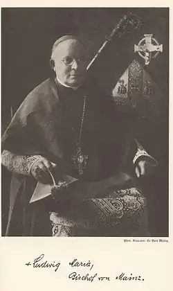 Ludwig Maria Hugo (19 January 1871, Arzheim district, Landau in der Pfalz โ 30 March 1935, Mainz) was a German Roman Catholic clergyman. From 1921 until his death he was Bishop of Mainz.