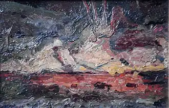 Portraiture, and especially self-portraits and portraits of members of his family constitute the greatest elements of Ludwik Konarzewski Jr’s artistic heritage. Also, his own unique interpretation of landscape is worth noting. Following Dunikowski, with reference to compact mass and a degree of decorativeness, his sculptures are also characterized by erudition in terms of the variety of techniques used (wood, metal, stone, ceramic forms, and majolica).[3] What is noticeable in his early paintings, from the 1940s and 1950s, is the influence of the colourists, gained from his studies at the Academy of Fine Arts. In the years that follow that influence subsides, and yields to a neo-expressionism that is manifested especially in landscapes. However, all these works share a realistic expression of reality that is revealed with special force in a very personal attitude to the people portrayed. This constitutes an essential characteristic and value in his works as compared with trends and directions in art in the second half of the 20th century which, on the whole, oscillated beside or beyond visible meaningful content. Nowadays it is his earlier works that seem to be particularly valuable: despite a visible influence of the school, they contain, in a realistic form, his personal and original way of perceiving reality through fine arts.