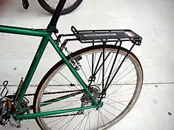 A luggage carrier, also commonly called a (bicycle) rack,[1][2] is a device attached to a bicycle to which cargo or panniers can be attached. This is popular with utility bicycles and touring bicycles.