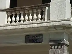 The structural system for Lui Seng Chun consists of reinforced concrete shallow pad foundations supporting granite columns with reinforced concrete beams, floors and walls.[1] Its architecture reflects the Neoclassical style which is characterised by a square-shaped frame and a row of decorative balustrades in front. The deep verandahs were added to prevent rain from flooding the house, block sunlight and keep the indoor area cool. This, together with the stone plaque marked with the name of the medicine shop installed at the top of the building, is typical of pre-war Chinese tenements. The main facade of the building was decorated with ornate classical Italianate designs, one of which is the broken pediment at the shop. The curved front elevation was designed to make better use of the narrow strip of land restricted by the road junction. Structurally, the external walls of the building are made of plastered red brickwork with columns and beams of reinforced concrete.