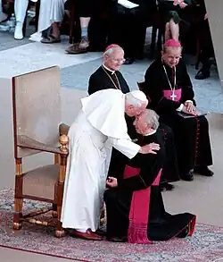 In 1983 he was given the title of Monsignor by Pope John Paul II. He outlined his views on politics in an address to an assembly of the Italian Christian Democratic party at Assago on 6 February 1987.[6]
