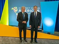 Almagro meets with US Secretary of State Antony Blinken at the 9th Summit of the Americas in 2022.