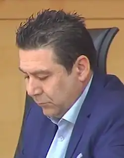 In 2019, Santos was again the only UPL member elected to the Cortes.[5] In the 2022 election, the party rose to three deputies, matching 1999 as its best result.[6] Allying with Ángel Ceña, the leader of the three deputies elected by fellow regionalist party Soria ¡Ya!, the four formed a parliamentary group with Santos as spokesperson; they said that if Ceña was barred by parliamentary protocol from asking questions as a deputy spokesperson, the role would alternate every month.[7]