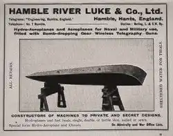Hamble became an aviation centre at around 1910, and Luke built a prototype Seaplane to the design of F. Murphy, the HL1, as "Hamble River, Luke & Co." It was exhibited at Olympia’s in March 1914 but was not a success. At the start of World War I, they started building aircraft components.