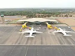 Following parliamentary approval in December 2020, a $270 million expansion project started. The project included a new passenger terminal, VIP terminal, taxiways and widening of the runway. The annual capacity was planned to be 1 million passengers and would be capable of handling 8 wide-body aircraft at any one time. The new terminal is located on the northern side of the runway, towards the eastern end.[16] The new terminal was officially opened on 4 March 2023. A management agreement was signed with Summa Airport (SL) Ltd.[17]