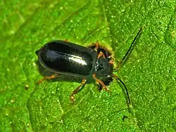 Luperus longicornis is a skeletonizing leaf beetle belonging to the family Chrysomelidae, subfamily Galerucinae. The species was first described by Johan Christian Fabricius in 1781.