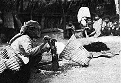 Food grains were issued to the needy on the condition of repayment with interest. This was difficult due to the lack of monetization of the economy at the time.[35] To deal with this phenomenon, the British resorted to forced labour. Labourers were pooled from several villages to work on expanding Aizawl as a city by building roads, bungalows, offices and water storage tanks to combat water scarcity.[36] Even if an individual had not taken a loan personally for food relief, they would become obligated to participate in forced labour to pay off another's debt. In retaliation, some villages and chiefs moved out of the Lushai Hills. Dokhuma Sailo moved his village to Tripura, and Hrangvunga Sailo also moved 200 families under him out of the territory to Tripura.[37]