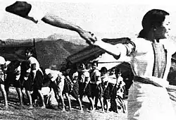 Returning from the war encouraged veterans to join the Assam Rifles, Assam Regiment and Indian Army Hospital Corps.[42] In Aizawl, a memorial was constructed shortly after the war to commemorate the deaths of 71 Labour Corps volunteers.[40] Exposure to foreign cultures in the course of the war redeployments also began to bring home new ideas of westernization and modernization. Some of these developments were the introduction of short hair and European dress. Articles such as those by Lalsailova in Mizo leh Vai suggested that rural readers consider moving to Aijal for the purpose of progress (hmasawnna). Mizo labourers also brought back crop seeds such as mustard, which changed traditional Mizo cuisine to French fusion in the post-war era.[45]