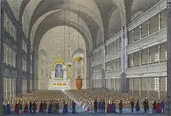 In 1840, a large organ from the Walcker company (Ludwigsburg, Kingdom of Württemberg) was installed in the temple. In 1851, oak doors were installed in the central portal, and the open porch became a vestibule.[16] The carved doors were made according to the drawings of the architect Y.K. Hofer (or G.A. Bosse).[17]