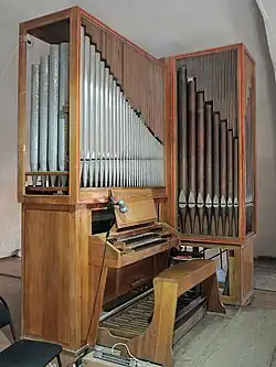 In 2001, the Emmaus Church from Kassel-Brasselsberg donated an organ to the Yaroslavl Lutheran community.[26] But due to the dilapidated condition of the building, it was impossible to install the instrument in it. The condition for obtaining the organ was the restoration of the church, which was subsequently carried out.[27] In July 2015, the organ was installed in the church. It was manufactured by Paul-Ott Goettingen in 1958. The organ has 16 registers and 1060 pipes. On 4 October 2015, he was solemnly consecrated.[11]