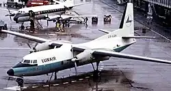 From 1964 to 1969, Luxair operated three Lockheed L-1649A Starliner aircraft in a cooperative agreement with Trek Airways, from Luxembourg to Johannesburg. The Starliners were painted in Luxair livery and were registered in Luxembourg.[6] By 1967, Luxair's fleet consisted of three Fokker F27 Friendships and one Vickers Viscount. The latter was written off in a non-fatal accident in 1969 and replaced the following year by the airline's first jet airliner, a Sud Aviation Caravelle. By 1976, Luxair was operating a Boeing 707 with a Boeing 737-200 then joining the fleet in 1977.
