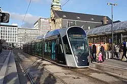 Between 1875 and 1964, the city was covered by an extensive tram network. In December 2017, trams were reintroduced to the capital, with the phased opening of a new line, completed in March 2025, which runs between Luxembourg Airport and Gasperich, via the city centre.[35][36][37] The network is expected to have 4 lines by 2035, with future lines currently in the planning stages.[38]