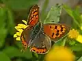 Lycaena phlaeas, the small copper, American copper, or common copper, is a butterfly of the Lycaenids or gossamer-winged butterfly family. According to Guppy and Shepard (2001), its specific name phlaeas is said to be derived either from the Greek φλέγω (phlégo), "to burn up", or from the Latin floreo, "to flourish".