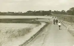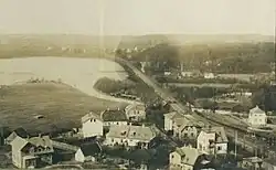 The opening of the railway led to increasing building activity along the shores of the lake. A lake promenade was established at the embankment in 1920 to improve access to the lake for residents in the area. In 1928, the municipality established Folkeparken after acquiring another property on the lake shore. It was used for events both on Constitution Day and Midsummer's Eve. In the 1930s and 1940s, Lyngby-Taarbæk Municipality acquired Lyngby Åmose to the north of the lake which had until then belonged to the farmers in Virum.[1]