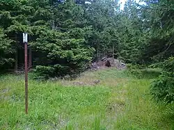 On the summit area, there is a triangulation station marked on maps with the number 19, at an elevation of 1,092.30 metres above sea level, with geographical coordinates of 50°05′47.45″N 17°17′29.64″E / 50.0965139°N 17.2915667°E.[5] Next to it stands a steel post warning against damage, with a plaque that reads Státní triangulace (English: State Triangulation – Damage is punishable). This point is located about 110 metres southwest of the summit.[5][11] Some maps take the position of the main triangulation station or a nearby spot as the mountain's summit, which causes discrepancies in the location.[12] The State Administration of Land Surveying and Cadastre lists the highest point of the summit at 1,098.6 metres above sea level, with geographical coordinates of 50°05′50.1″N 17°17′29.4″E / 50.097250°N 17.291500°E.[5]