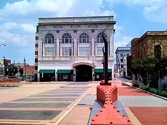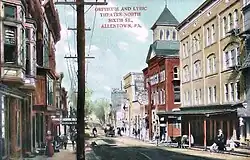 The Lyric opened with a comic opera production based on the life of 18th century Prussian King Frederick the Great.[3] The theater offered vaudeville, operas, plays, dramatic skits, minstrel shows, films and concerts, and also became one of the leading burlesque halls in the United States.[2] On December 1, 1910, French actress Sarah Bernhardt made a one-night appearance at the Lyric.[4] In 1912, it was the site of speeches by Theodore Roosevelt, Woodrow Wilson and Booker T. Washington.[5] Close to the Lyric at 35 North Sixth was the Orpheum Theater, which opened in 1906. While the Lyric presented primarily stage plays, the Orpheum was the first major vaudeville theater in Allentown. It presented variety shows that mixed jugglers, song-and-dance teams, acrobats, comedians with other performers.[4]