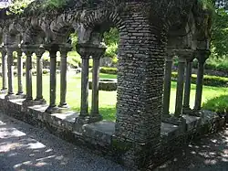 View of the monastery courtyard through the remains of the cloister, facing south-east