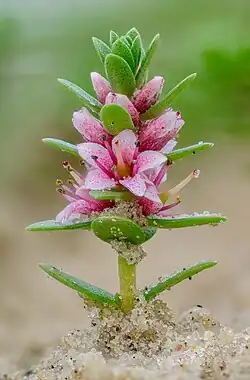 Lysimachia maritima is a plant species belonging to the family Primulaceae. It was previously called Glaux maritima, the only species in the monotypic genus Glaux.[1] The species has a number of common names, including sea milkwort, sea milkweed, and black saltwort.