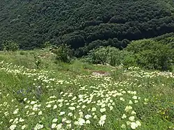 Lyulin is built up of limestones, tuffs, tuffites and andesites. The main watershed divide of the Balkan Peninsula, separating the Black Sea drainage basin to the north and the Aegean Sea one to the south, runs along the mountain range. The southwestern slopes are drained by several small rights tributaries of the Struma; the northeastern area is drained by left tributaries of the Iskar. The predominant soils are cinnamon and brown forest soils. Lyulin is covered with deciduous forests and pastures to the southeast and is mostly deforested to the northwest.[1][4]