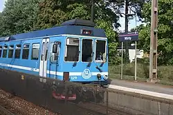 Mörby station is a railway station on the Roslagsbanan 891 mm narrow gauge railway located in Danderyd Municipality northeast of Stockholm, Sweden.