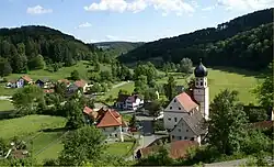 Due to the location of village of Magolsheim on the erstwhile border between Württemberg and Further Austria it has both Protestant and Catholic churches to cater to the spiritual needs of the villagers.
