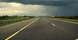 The M7 motorway (Irish: Mótarbhealach M7) is a motorway in Ireland. The motorway runs continuously from the outskirts of Naas in County Kildare to Rossbrien on the outskirts of Limerick city.[1] The M7 forms part of the Dublin to Limerick N7 national primary road. The section of the motorway bypassing Naas, an 8 km stretch, was the first section of motorway to open in Ireland, in 1983. Following substantial works to extend the M7 to Limerick, by the end of 2010, the motorway replaced all of the old single-carriageway N7 route which is now designated as R445. At 166.5 km, the M7 is the longest motorway in Ireland.