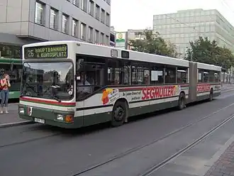 The MAN NG272(2) was a single-decker tri-axle articulated bus built by MAN Nutzfahrzeuge from 1992 until 2000. It is the articulated successor to the MAN NG272, and a development of the rigid bodied MAN NL262. The new (2) variant changed the original pillar seat supports which allowed the windows in the front section to be lowered, but otherwise remained visually very similar to the NG272. Especially sold in Europe, in particular in Germany, it was replaced by the MAN A23 in 1998.