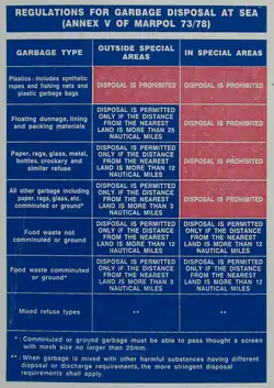 - ^ "Garbage". imo.org. Pollution Prevention. Archived from the original on 15 April 2018. Retrieved 14 April 2018.