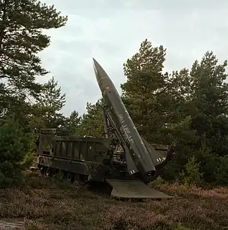 The MGM-52 Lance was a mobile field artillery tactical surface-to-surface missile (tactical ballistic missile) system used to provide both nuclear and conventional fire support to the United States Army. The missile's warhead was developed at Lawrence Livermore National Laboratory. It was replaced by MGM-140 ATACMS, which was initially intended to likewise have a nuclear capability during the Cold War.[4]
