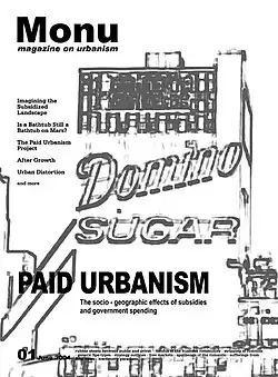 MONU is an English-language, annual[2] magazine on urbanism that focuses on the city in a broad sense, including its politics, economy, geography, ecology, its social aspects, as well as its physical structure and architecture. Therefore, architecture is one of many fields covered by the magazine - fields which are all brought together under the catch-all term "urbanism". MONU is edited in the city of Rotterdam, Netherlands.[3][4] Continuous publication began in June 2004. It refers to itself as an independent, non-conformist, niche publication that collects critical articles, images, concepts, and urban theories from architects, urbanists and theorists from around the world on a given topic.