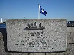 On 15 June 1990, on Langelinie, the promenade quay in Copenhagen, a memorial stone for Jutlandia was revealed. The stone is a block of Korean granite, sailed from Pusan to Copenhagen on the "new" Jutlandia, now an 80,000 hp (60,000 kW). containership.