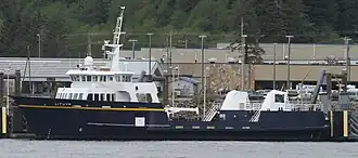 The state of Alaska issued contracts for a ferry dock at Metlakatla in 1973.[1] The town was originally served by Alaska Marine Highway System ferry M/V Chilkat. The terminal was later modified for use by M/V LeConte and M/V Aurora instead.[2][3] During the summer there were several stops a week, but in the winter, the town had one ferry visit per week.[4] Metlakatla residents argued for daily service, so that people could commute to work in Ketchikan. The state of Alaska issued a request for proposals for the design of a Metlakatla ferry on May 30, 2000.[5] The Alaska Legislature appropriated $3 million for a new ferry and $880,000 for a new ferry terminal for it to dock at as part of the state's 2001 budget.[6]