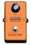 The first MXR effects pedal was the M-101 MXR Phase 90 phaser. The Phase 90 was used on the first two Van Halen albums.[4] The MXR Phase 45, followed, as well as a programmable version, the Phase 100. Like other pedals of the time, MXR pedals prior to 1981 did not have LEDs, A/C adaptor jacks, or true-bypass switching.