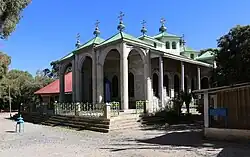 Emperor Yohannes IV in the 19th century became Negus and built a castle and Ethiopian Orthodox Tewahedo churches in the city.[4] The castle was constructed by Ethiopian engineer Lij Ingidashet and Italian engineer Giacomo Naretti.[26][27] The castle complex now serves as a museum where the Emperor's throne, royal bed, ceremonial dress, rifles, and many other valuable historical collections can be seen.