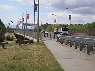 | Evans Bridge, Great Western Hwy | A road and pedestrian crossing for the Great Western Highway/Sydney Road. The Evans Bridge is Bathurst's main traffic thoroughfare across the Macquarie River, linking the central business district with Kelso, and hence, Sydney. | |||